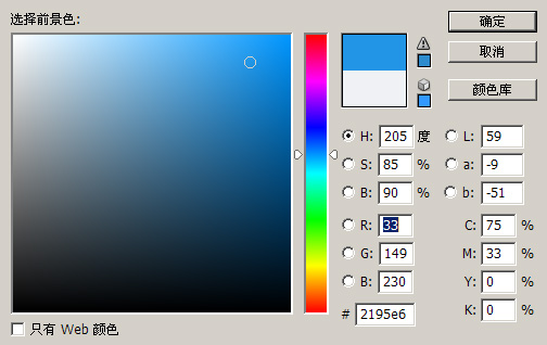 在HSB模式中,H(hues)表示色相、S(saturation)表示飽和度、B(brightness)表示亮度。 HSB模式對應的媒介是人眼。
