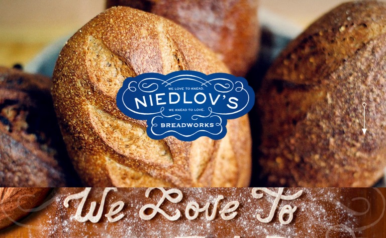 Niedlov's Breadworks 為自己設(shè)計(jì)了一個(gè)單頁(yè)面網(wǎng)站,且沒(méi)有導(dǎo)航菜單,他們用頁(yè)面右側(cè)的箭頭代替了菜單。根據(jù)箭頭方向的引導(dǎo),你可以上下滾動(dòng)頁(yè)面,當(dāng)滾動(dòng)出現(xiàn)新的大圖時(shí),會(huì)覆蓋掉前一張圖片。