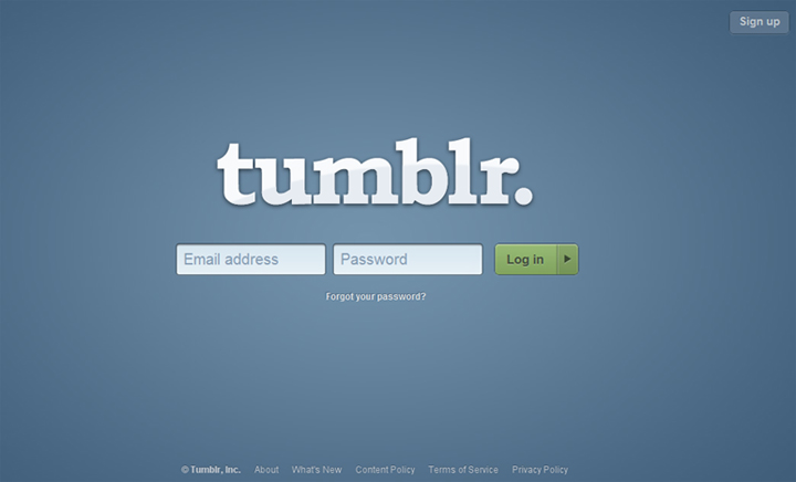 Tumblr的登錄界面沒有過多的視覺干擾,優雅大方,一切元素的存在都是為了用戶更好地登陸,登錄過程非常流暢。