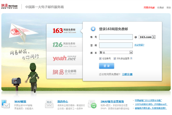 163郵箱的登錄界面采用了大幅的插圖,小郵差很快喚醒了80后等待來信的記憶,有故事的插圖與用戶建立情感的聯系,喚起用戶的心靈共鳴,讓用戶更有歸屬感。