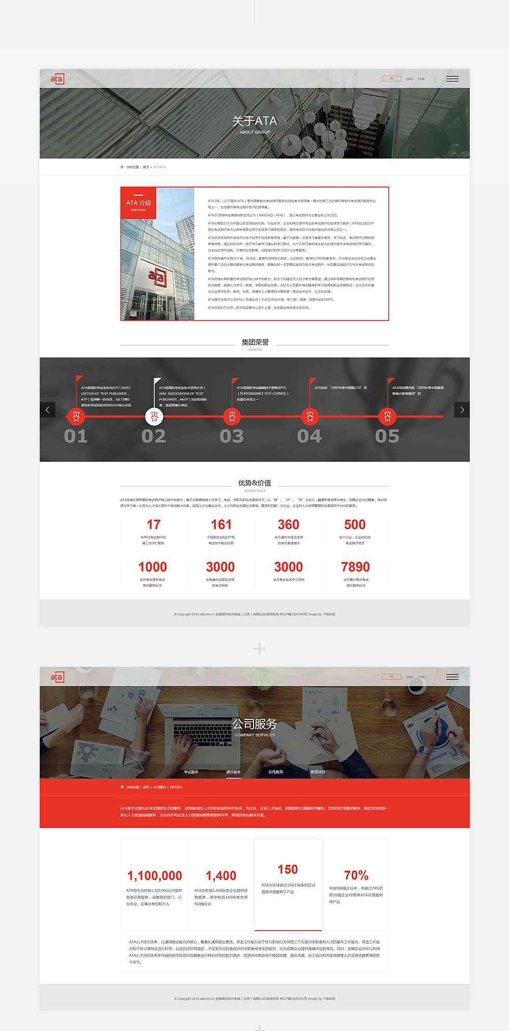 ATA的網站建設項目采用了當前比較前沿的技術,HTML5響應式網站布局,整體設計風格采用了簡約歐美風,布局均采用一屏布局,其中的交互動畫充滿了科技感,酷炫的動畫使整個網站充滿活力,更多精彩可以關注ATA官網。
